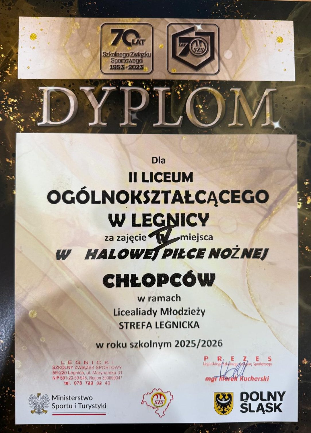 16.03.2026r. zakończyła się Licealiada Miasta Legnicy w halowej piłce nożnej chłopców.